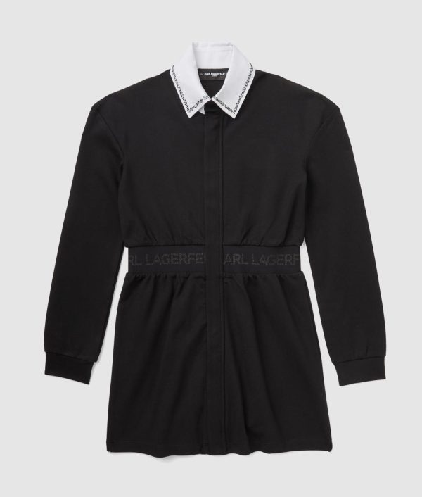 Dieses weiche Strickkleid bietet dank des elastischen Bunds den ganzen Tag über Tragekomfort. Ein kontrastierender Kragen mit glitzernden Strasssteinen sorgt für ein auffälliges Finish.