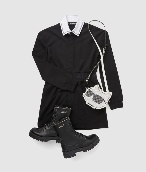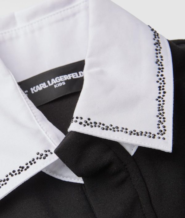 - Kontrastierender Kragen aus Popeline-Baumwolle, umrandet mit funkelnden Strasssteinen